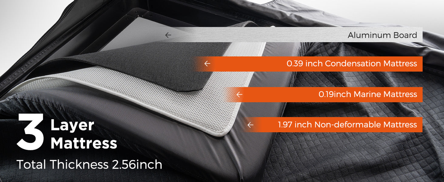 Comfort & Privacy: Enjoy a breathable, sun-blocking polyester fabric and a 3-layer mattress that ensures a dry, cozy night’s sleep, all while keeping your space private.