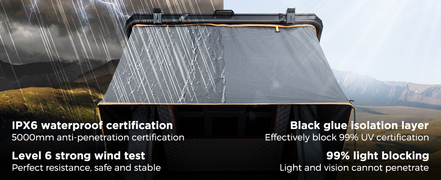 Effortless Setup: Pop up your tent in just 10 seconds with air pressure rods. Designed to fit all vehicle heights, it’s perfect for quick, hassle-free camping.