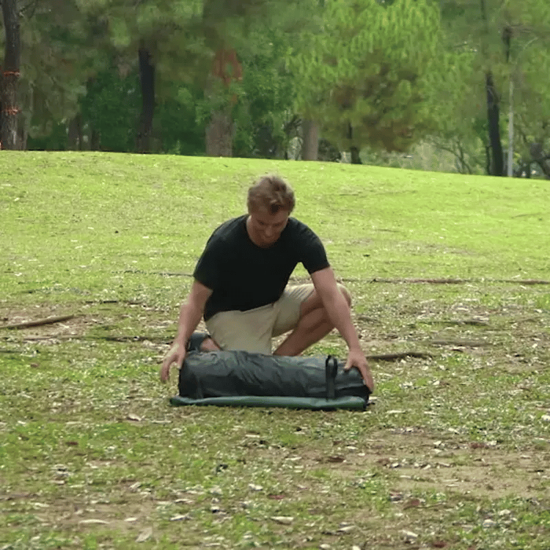 STEP 1: Squeeze the inner rods connected to the piston to bring the tent down
