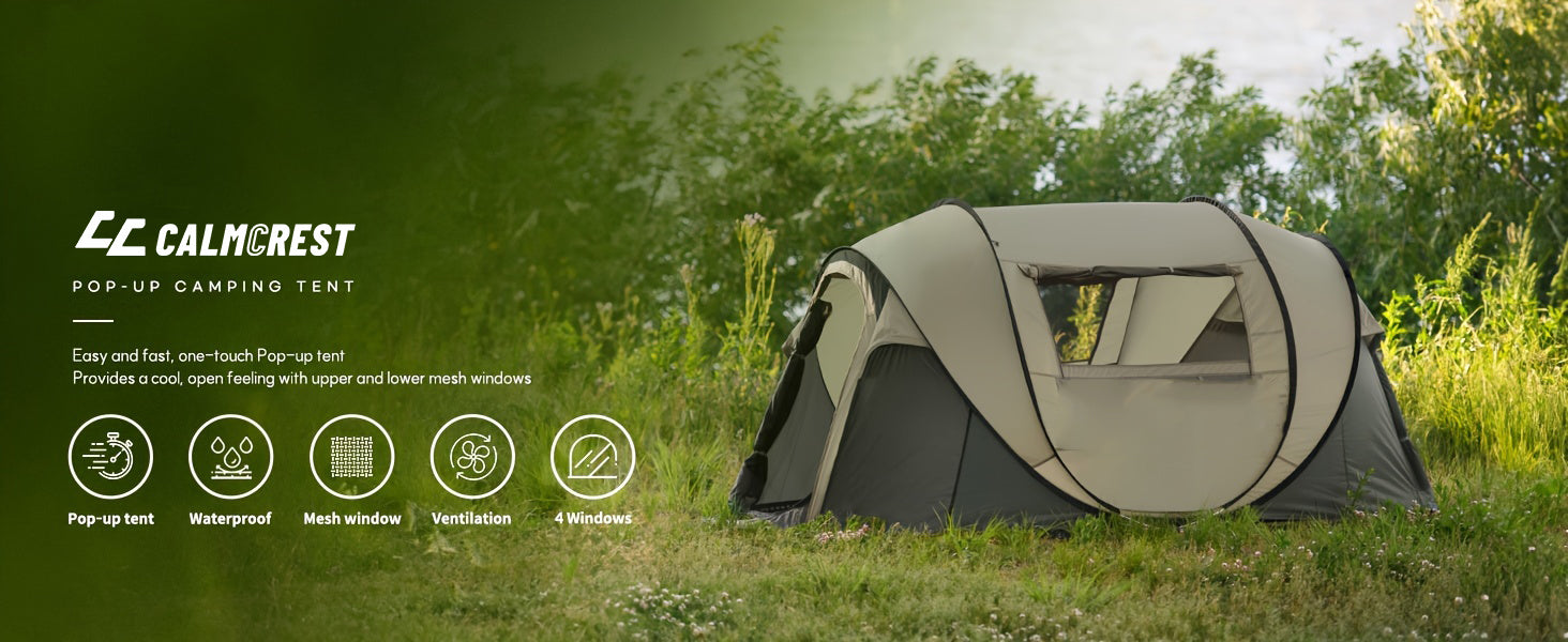 Make the most of your time away with the Calmcrest Pop-up Tent, a simple 4 person pop-up tent that pitches in seconds and is easy to fold away. Allowing you to pop up and go, this weatherproof tent is ideal for festivals and short camping trips.