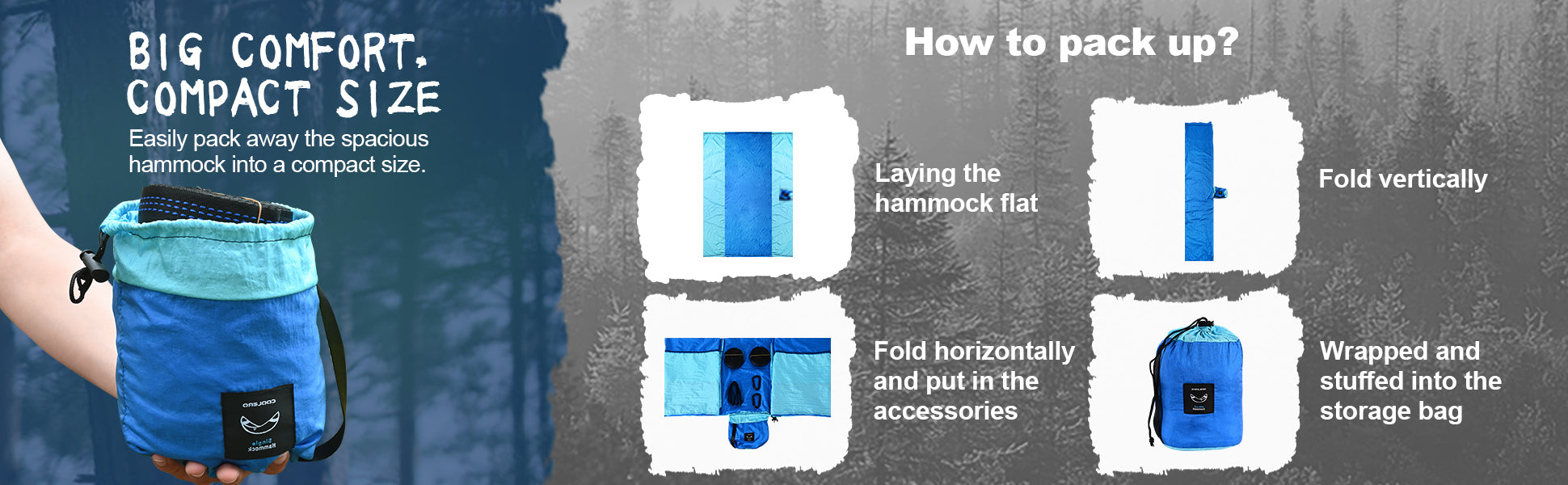 Compact & Lightweight: Weighing a mere 27oz and folding down to the size of a bottle, our portable hammock is incredibly light and convenient. The Single Hammock spans 9 feet long by 4.5 feet wide, while the Double Hammock measures 10 feet long by 6.5 feet wide—perfect for solo adventurers or those seeking extra space. Toss it in your backpack and embark on your next adventure!